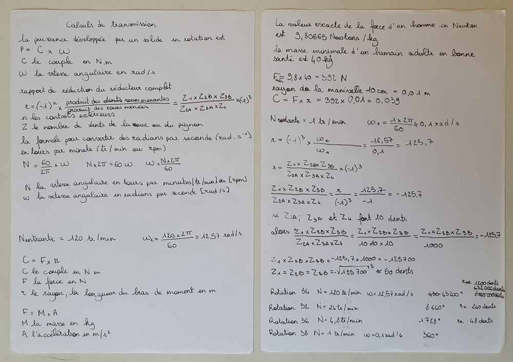 Calcul du nombre de dents pour les roues d'un engrenage qui transforme la vitesse en force
