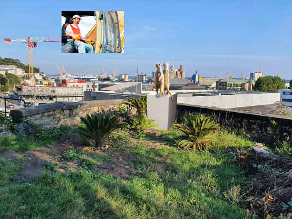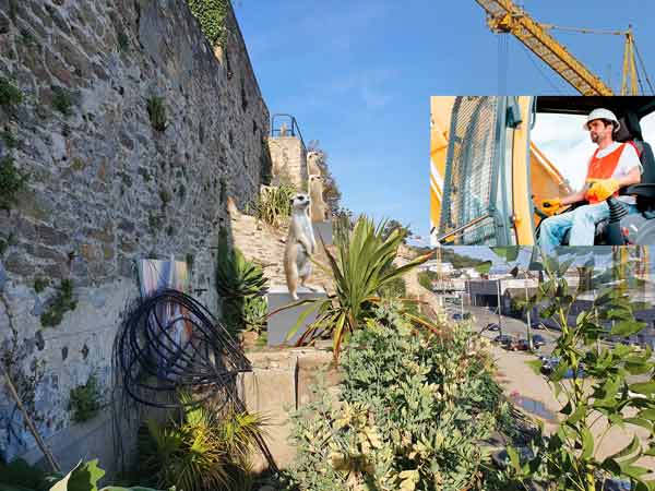 Tête à tête entre les suricates du jardin extraordinaire de Brest (fictifs) et les grutiers du port de commerce de Brest
